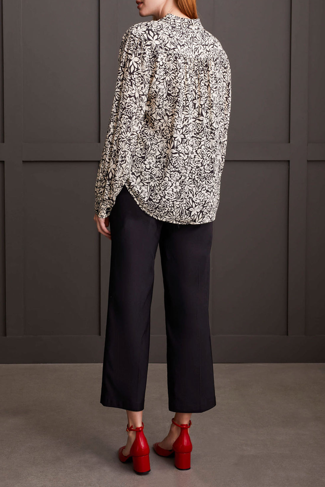 Bring a touch of elegance to your wardrobe with this black and cream floral blouse. Featuring a beautifully detailed allover print, this button-up blouse is designed with a classic collar and full-length sleeves for a polished silhouette.