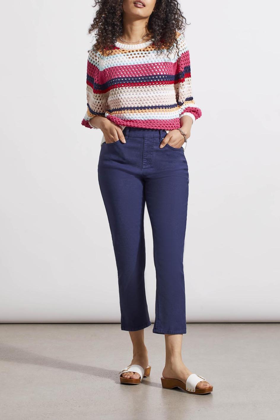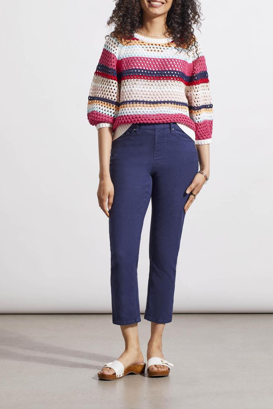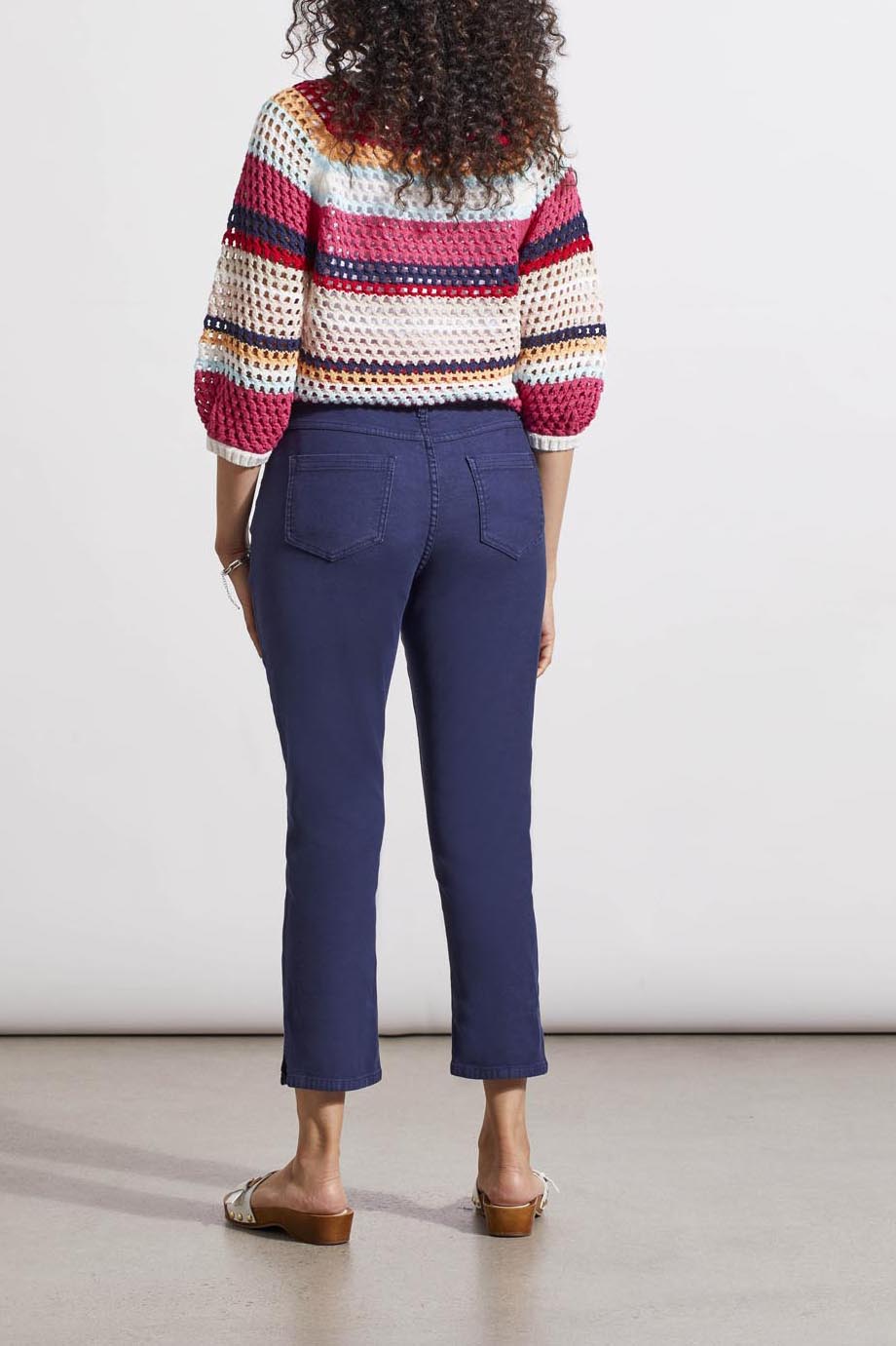 Add a pop of polish to your everyday lineup with these sleek navy ankle pants. Designed in a flattering curvy fit, they feature a mid-rise waist and a modern slim leg that hits just above the ankle. The stretchy twill fabric ensures all-day comfort, while the classic 5-pocket styling adds function and versatility. Pair them with anything from a tucked-in blouse to a laid-back knit for an effortless look.