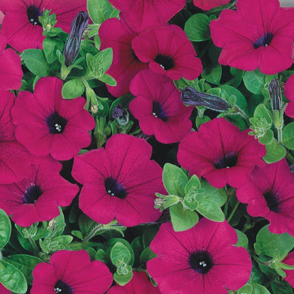 The original Waves are still the best seed-raised trailing petunias. They require no pinching and a single plant can spread to 1.5 m (4′) across and hugs the ground at only 15 cm (6″) tall. Although described as a “ground cover”, Wave Petunias will not tolerate foot traffic. Colourful purple 5-7.5 cm (2- 3″) blooms smother the plants. Packet contains 8 seed.