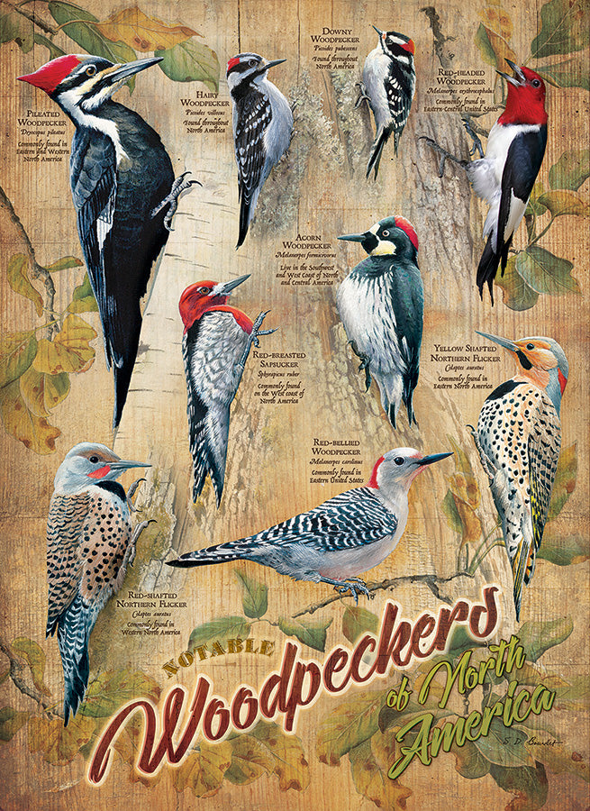 features nine fun loving birds from North America by artist Susan Bourdet.