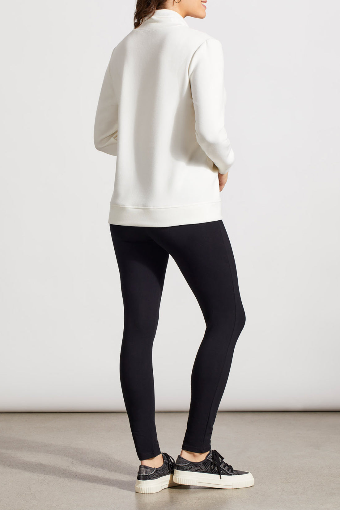 Keep warm when temperatures plummet with this stylish scuba knit top, featuring a sleek funnel neckline and a chic crossover front accented by self-tie cords to fend off the chill. Embrace the long-sleeve design for added coziness, while the functional hip pockets with contrast zippers add a touch of practical flair.