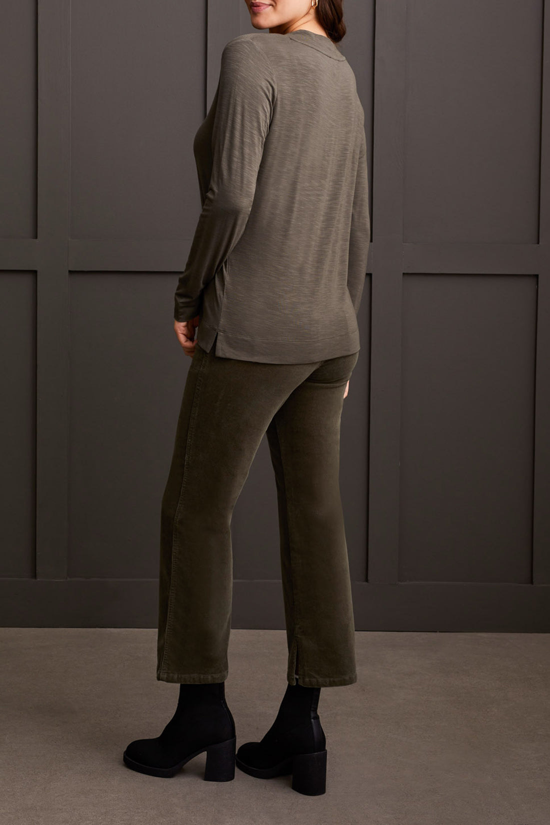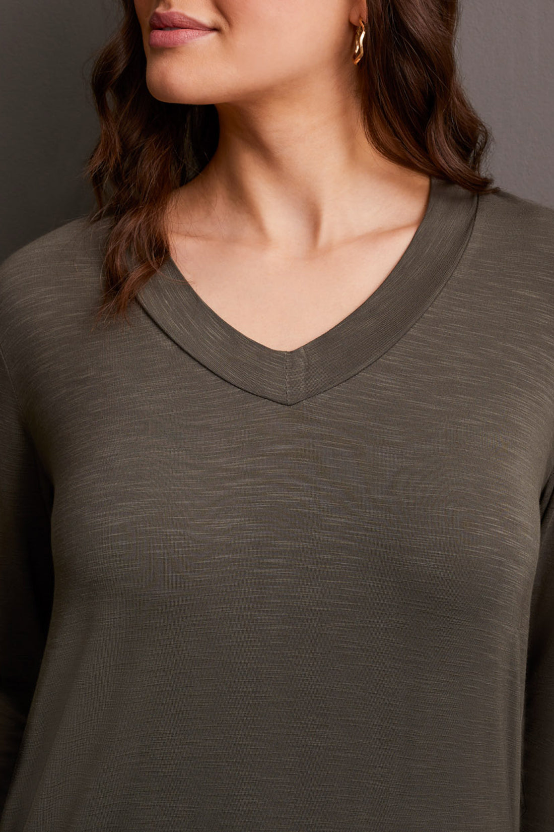 Effortlessly polished and endlessly versatile, this long sleeve V-neck top is a wardrobe essential. Crafted from a soft, lightweight fabric with a subtle slub texture, it offers a flattering fit and all-day comfort.