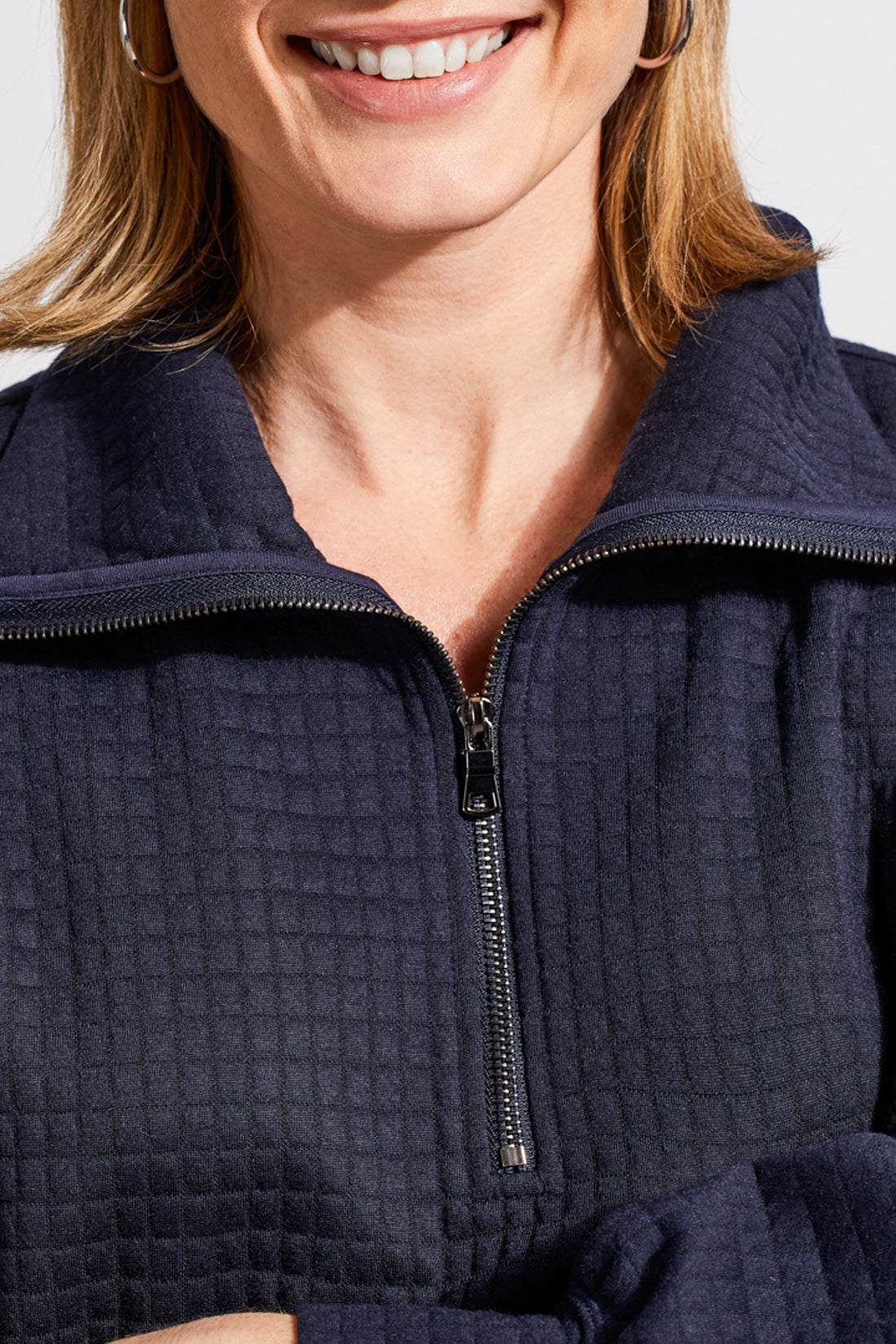 Crafted from knit fabric with a quilted finish, this long-sleeve funnel neck top spoils you with cozy comfort. It's styled with an adjustable half-zip at the neck, a roomy kangaroo pocket, and a high-low hem that's just as flattering as it is practical.