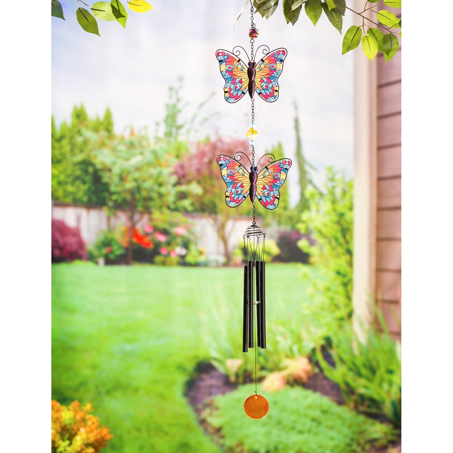 Wind Chime - Stained Glass Tiered Butterfly (Orange)