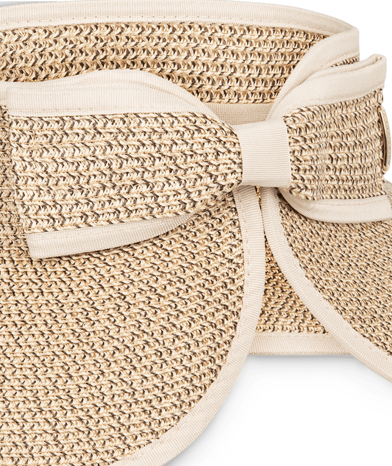Classic roll up visor made with recycled materials and finished with a pretty bow on the back.