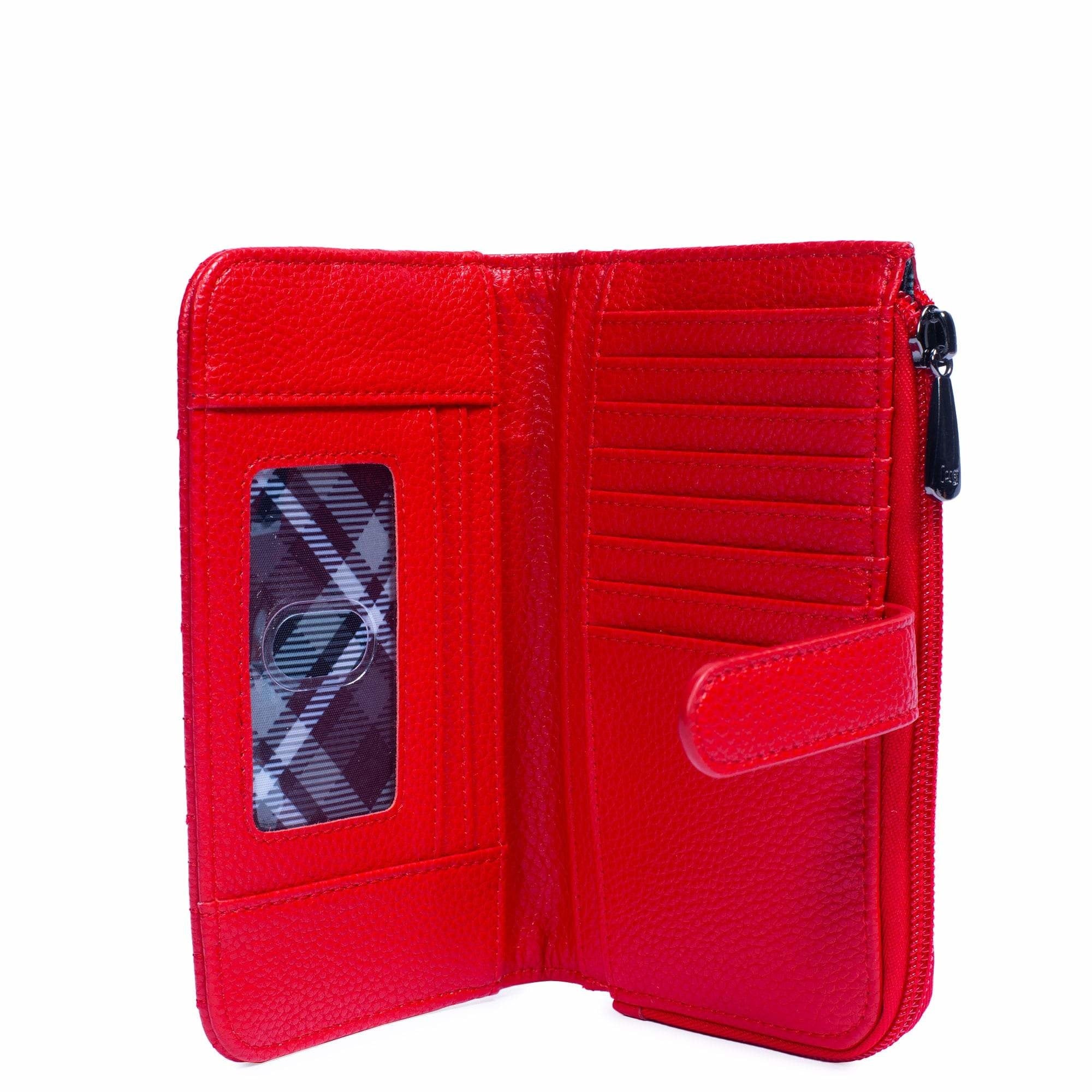 - The Tram you know & love BUT in a brand-new fabrication! This vegan leather compact wallet will be your new go-to accessory. Featuring a snap closure, a clear ID window, 9 card slots, and RFID-protection - this stylish & slim wallet can also be paired back with other handbags in Lug’s vegan leather collection.