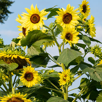 30 seed/gram. Easy to grow. In late May, choose a sunny site with well draining soil and sow seed about 6-12 mm (1/4-1/2″) deep and 7.5-10 cm (3-4″) apart. Thin or transplant seedlings to 30-45 cm (12-18″) apart. Seed can be started 2-3 weeks early indoors using plantable peat pots or Jiffy 7’s at 21 C (70 F). Harden off seedlings then transplant to a site in full sun. Keep plants evenly watered and fertilize twice during the season with a granular 15-5-15 or equivalent.