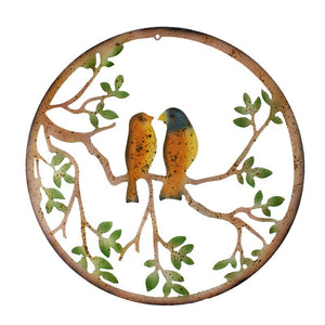 - Add a little bit of love to your space with this Circle Love Birds Wall Plaque. A beautiful and rustic accent, it will add charm to any indoor or outdoor space. Set on a metal background, the two love birds add a subtle pop of color to your décor.